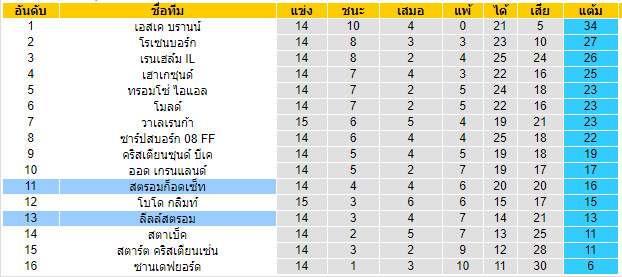 สตรอมส์ก็อดเซ็ตอาจจะเกมเยือนไม่ค่อยดีเท่าไหร่แต่ฟอร์มที่เป็นอยู่ต้องบอกว่ากำลังมั่นใจหลังจากชนะรวด 2 เกมติดต่อกันแบบสกอร์สวย 2-0 และ 3-0 ทริปนี้มาเยือนลีลล์สตรอมที่เล่นได้แค่ประคองตัวเสมอมา 2 นัดติด เฮดทูเฮดเจอกันบ้านลีลล์สตรอม เจ้าถิ่นอาจจะทำได้ดีกว่าแต่เจอกันล่าสุดเป็นสตรอมก็อดเซ็ตที่กดยับ 3-1 นักเตะทีมเยือนกำลังเล่นได้ดีและมั่นใจ ราคาเสมอแบบนี้วางทีมเยือนดีกว่าโอกาสบุกมาชนะเยอะเหมือนกัน ทีเด็ดบอลวาง สตรอมส์ก็อดเซ็ต