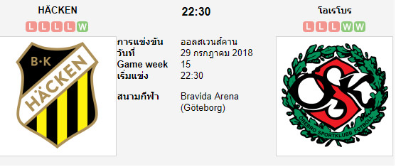 แฮคเค่นผลงานแย่หนักแพ้ 4 เกมติดต่อกัน แต่นัดนี้ดีหน่อยได้กลับมาเล่นในรังตัวเองซึ่งถ้านับเฉพาะสถิติในลีกต้องบอกว่าดีมากชนะ 3 เสมอ 2 ใน 5 นัดที่ผ่านมา เกมรุกดีมากยิงรวม 14 ประตู เกมล่าสุดเพิ่งถล่มยับซุนด์สวัลล์ 3-0 โอเรโบรมาเยือนด้วยผลงานที่ย่ำแย่แพ้ 3 เกมรวด ทริปเยือนเสมอ 1 แพ้ 2 จาก 3 นัดหลังและยิงประตูในการเล่นนอกบ้านไม่ได้เลยจากช่วงเวลาที่ว่า งานนี้ต้องบอกว่าแฮคเค่นมีโอกาสดีมากที่จะคืนสานต่อฟอร์มแจ่มในลีก ทีเด็ดบอลต่อ แฮคเค่น