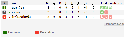 12/09/18 ชนะ ทีมชาติออสเตรีย 1-0 (เหย้า) ยูฟ่า เนชั่นส์ ลีก / ราคาบอล - เสมอ ... ได้