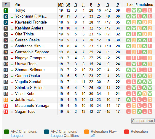 โยโกฮาม่า เอฟ มารินอสผลงานฤดูกาลนี้ดีมากชนะรวด 3 เกมติดเก็บเพิ่มเป็น 36 แต้มจาก 19 นัดรั้งรองจ่าฝูงและมีโอกาสขยับทำแต้มเท่า เอฟซี โตเกียว ที่มี 39 คะแนน ส่วนความพร้อมผู้เล่น เรียว ทากาโนะ (2 นัด) กองหลังอยู่ในช่วงพักฟื้นหลังเข้ารับการผ่าตัด 11 ตัวจริงเกมนี้น่าจะวางระบบการเล่น 4-2-3-1 ธีราทร บุญมาทัน พร้อมประจำการแบ็กซ้าย กองหน้า เอดิการ์ ชูนิโอ เป็นตัวเลือกแรก