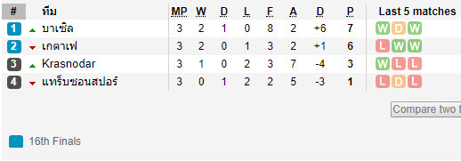 25/10/19 แพ้ บาเซิ่ล 0-1 (เยือน)