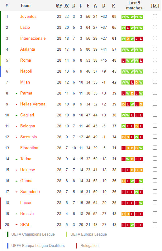 23/02/20 แพ้ ลาซิโอ 2-3 (เหย้า) เซเรีย อา / ราคาบอล - รอง 0.75 ... เสียครึ่ง