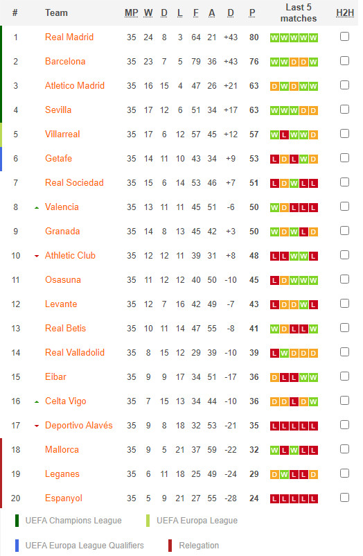 28/06/20 แพ้ เลบานเต้ 2-4 (เยือน) ลา ลีกา / เสมอ ... เสีย