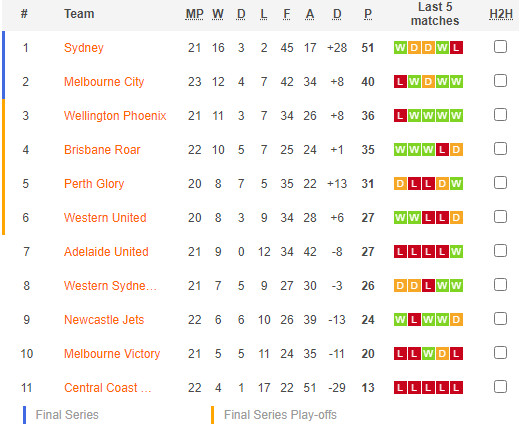 23/02/20 แพ้ ซิดนี่ย์ เอฟซี 0-3 (เหย้า) ออสเตรเลีย เอ ลีก / รอง 0.75 ... เสีย