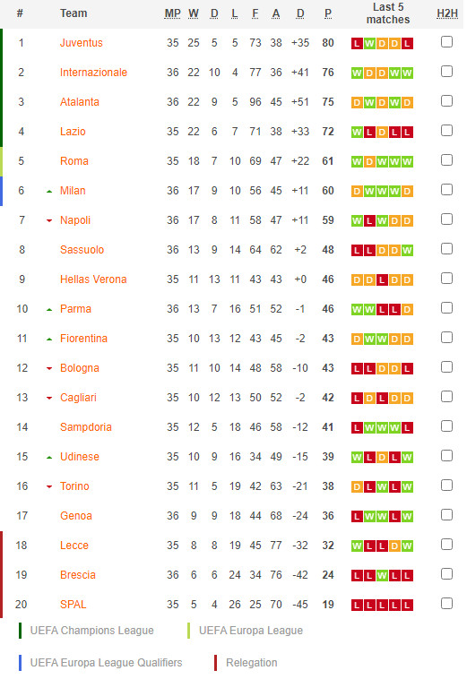 16/07/20 แพ้ โรม่า 1-2 (เยือน) เซเรีย อา / รอง 1 ... เจ๊า