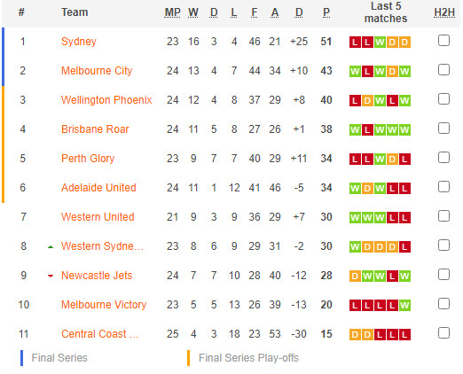 01/03/20 ชนะ เซ็นทรัล โคสต์ 6-2 (เหย้า) เอ ลีก / ต่อ 0.25...ได้