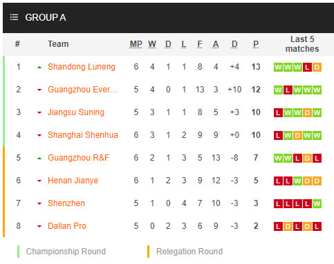 15/08/20 แพ้ ซานตง ลู่เหนิง 0-2 (สนามกลาง) ซุเปอร์ลีก จีน / รอง 1...เสีย