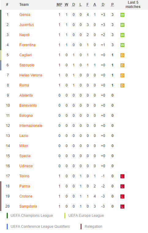 30/07/20 แพ้ ฟิออเรนติน่า 0-4 (เยือน) เซเรีย อา / รอง 0.5 ...เสีย