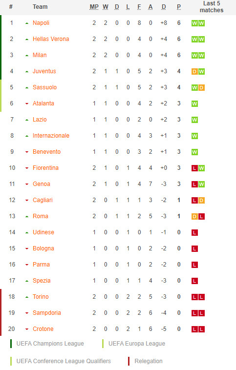22/09/20 แพ้ เอซี มิลาน 0-2 (เยือน) เซเรีย อา / รอง 1 ... เสีย