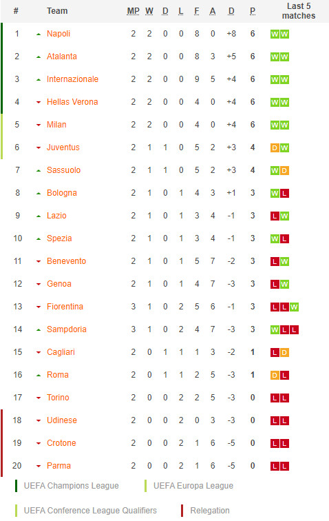 27/09/20 แพ้ เวโรนา 0-1 (เยือน) เซเรีย อา / เสมอ ... เสีย