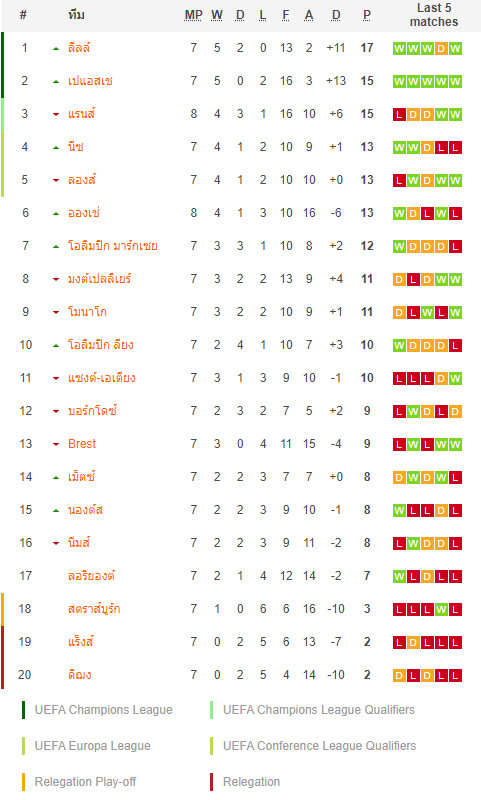 27/09/20 เสมอ ลียง 1-1 (เยือน) ลีก เอิง / รอง 0.75 ... ได้