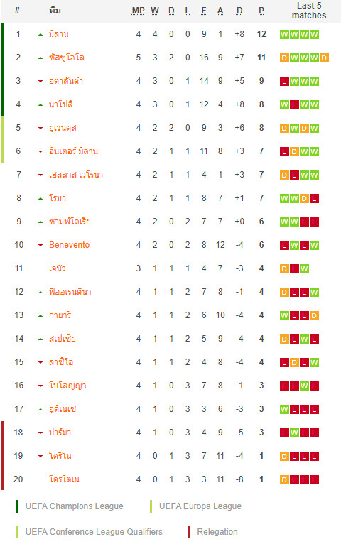 22/09/20 แพ้ เอซี มิลาน 0-2 (เยือน) เซเรีย อา / รอง 1 ... เสีย