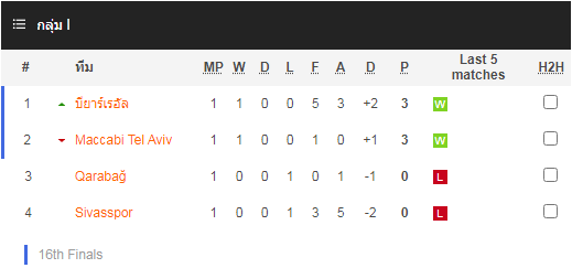 23/10/20 แพ้ มัคคาบี้ เทลอาวีฟ 0-1 (เยือน)