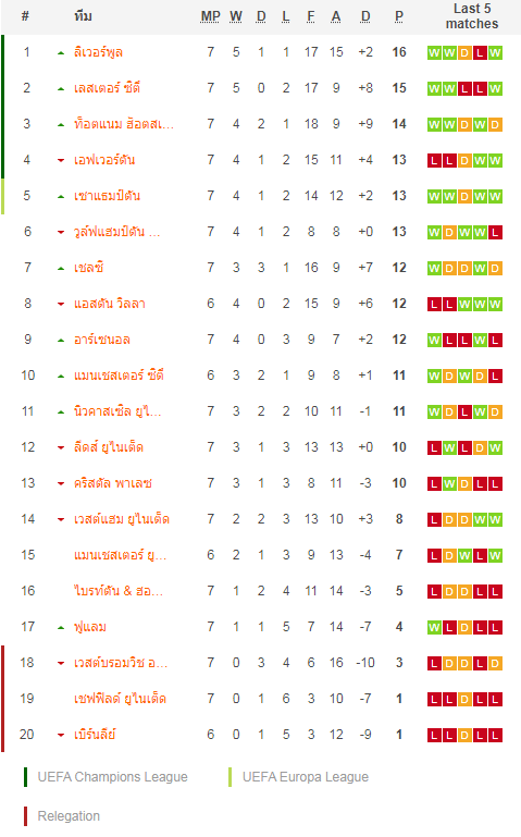 ฟอร์ม 6 นัดหลังสุดในลีก