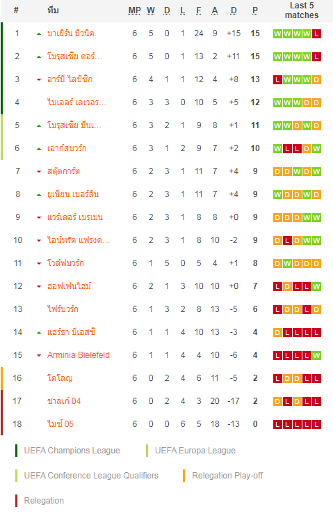 ฟอร์ม 6 นัดหลังสุดในลีก