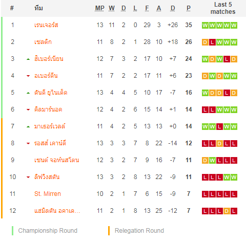 31/10/20 แพ้ ดันดี ยูไนเต็ด 1-2 (เยือน) ลีก / รอง 0.5 ... เสีย