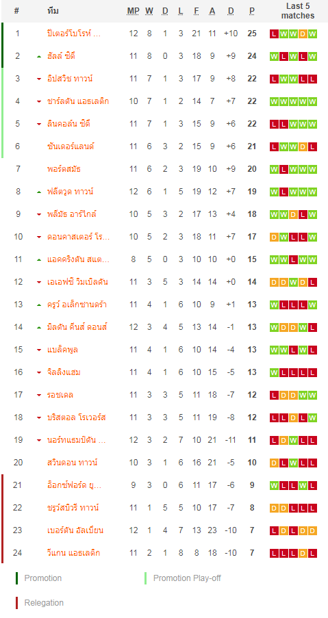 ฟอร์ม 6 นัดหลังสุดในลีก