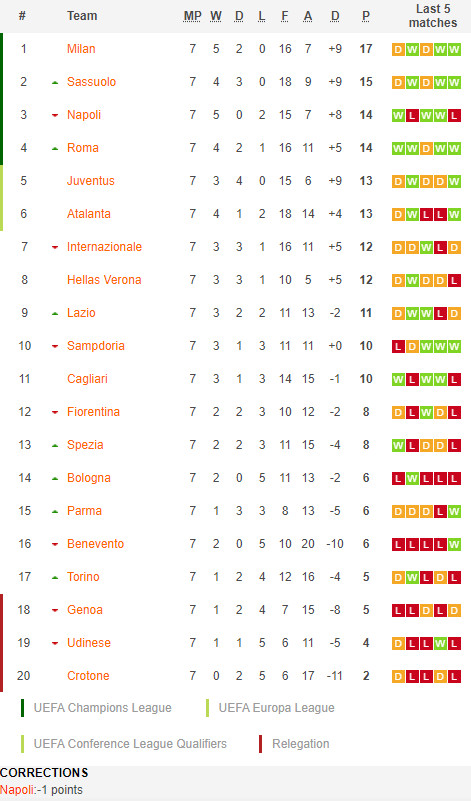 07/11/20 ชนะ ซามพ์โดเรีย 2-0 (เหย้า) เซเรีย อา / เสมอ ... ได้