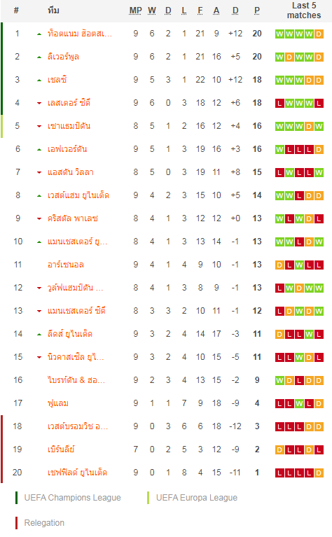 ฟอร์ม 6 นัดหลังสุดในลีก