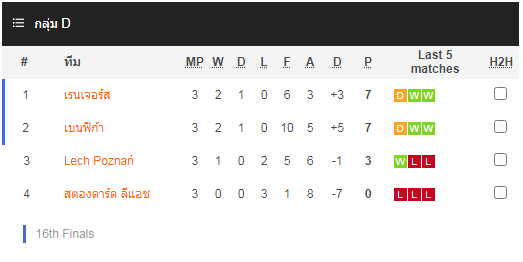 วิเคราะห์บอล ยูโรป้า ลีก กลุ่ม ดี : เรนเจอร์ส (1) -vs- เบนฟิก้า (2)