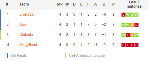 อตาลันต้าไม่จัดเต็มในลีกเพราะนัดนี้เลย หลังจากเอาชนะลิเวอร์พูลมาทำให้โอกาสเข้ารอบเปิดกว้างทันทีเพราะมี 7 แต้มเท่าอาแจ็กซ์ เกมนี้ได้เล่นในรังและเจอมิดทิลลันด์บ๊วยกลุ่มที่ยังไม่มีแต้มและตกรอบไปแน่นอนแล้วแทบไม่มีแรงจูงใจในการเล่นเข้าทางเจ้าบ้านเลย นัดนี้ต่ออตาลันต้าไปเลย