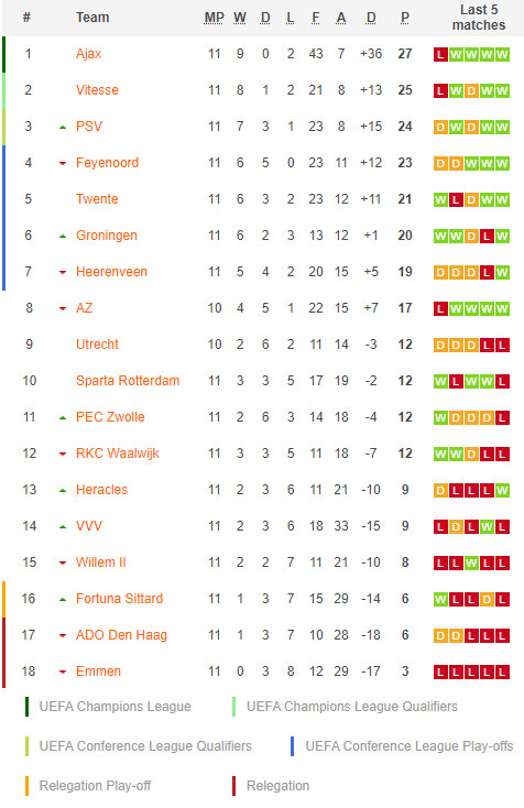22/11/20 แพ้ เฟเยนูร์ด 1-3 (เหย้า) ลีก / รอง 1 ... เสีย