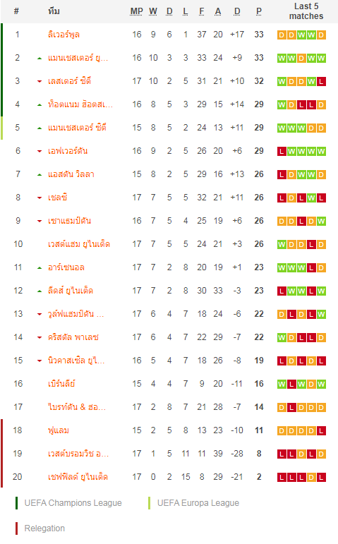 ฟอร์ม 6 นัดหลังสุดในลีก