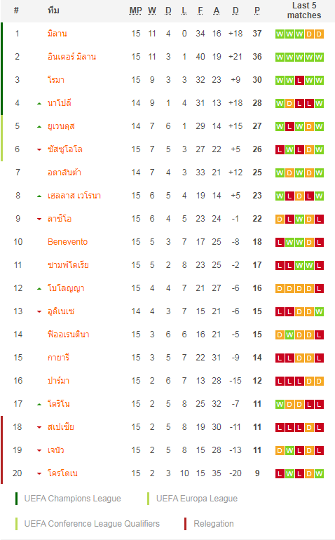 24/12/20 แพ้ ซัสซัวโล่ 2-3 (เหย้า) เซเรีย อา / เสมอ ... เสีย