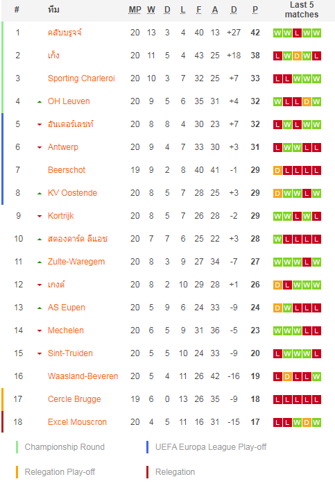16/12/20 แพ้ อันเดอร์เลชท์ 1-2 (เยือน) เฟิร์ส ดิวิชั่น เอ / รอง 0.75...เสียครึ่ง