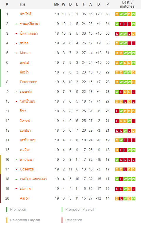 28/12/20 แพ้ เอ็มโปลี 1-3 (เหย้า) เซเรีย บี / เสมอ ...เสีย