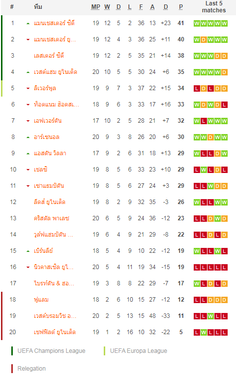 ฟอร์ม 6 นัดหลังสุดในลีก
