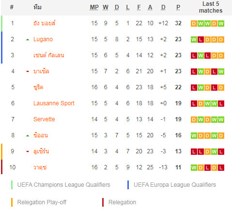 24/01/21 แพ้ ซูริค 1-4 (เหย้า) ดิวิชั่น 1 / ต่อ 0.5...เสีย