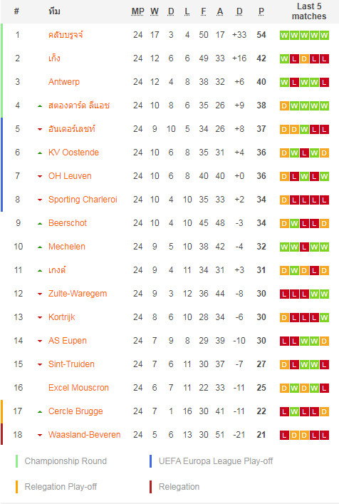 24/01/21 แพ้ อุสเตนด์ 1-2 (เหย้า) เบลเยี่ยม โปร ลีก / ต่อ 0.25 ... เสีย