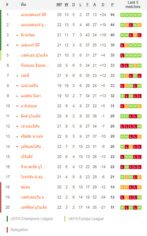 16/01/21 แพ้ เวสต์แฮม 0-1 (เยือน) พรีเมียร์ลีก / รอง 0.5...เสีย