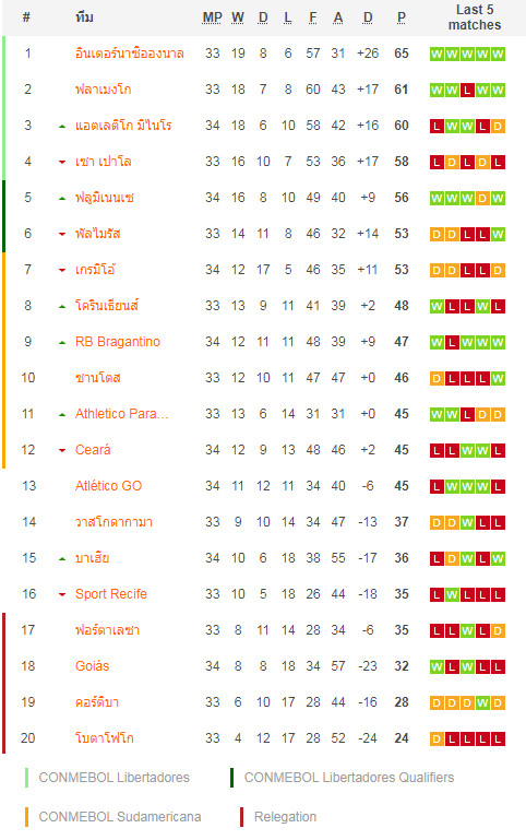 อันดับไม่ได้ห่างกันไกลบอลบราซิลคู่นี้ที่สองทีมนั้นอยู่โซนล่าง ฟอร์ตาเลซ่าทีมเหย้าเอง 33 นัดมี 35 คะแนนฟอร์มเอง 4 เกมหลังในลีกพ่ายไป 3 ดูไม่ดีเอาเท่าไร ขณะอีกฝั่งเองกอริติบ้าทีมนั้นอยู่รองบ๋วยมี 28 แต้มผลงานนั้นกระเตื้องหน่อย 5 เกมหลังมาไม่แพ้ใครจะหนักไปทางเสมอซะมากแต่รวมๆดีขึ้น กับราคาบอลนั้นออกครึ่งควบลูกเจ้าบ้านต่อดูเอาเรื่องเลยแต่พอมองดูสถิติพบกัน จะเห็นชัดว่าบอลคู่นี้บ้านใครบ้านมันชัดเจน ทำให้วันนี้ต้องเลือกเชียร์กับฝั่งเจ้าถิ่นไปก่อนโอกาสเข้าวินนั้นมีมากจริงๆ