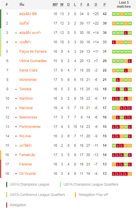 17/01/21 แพ้ โมไรเรนเซ่ 0-1 (เหย้า) ปรีเมร่า ลีกา / ต่อปป ... เสีย