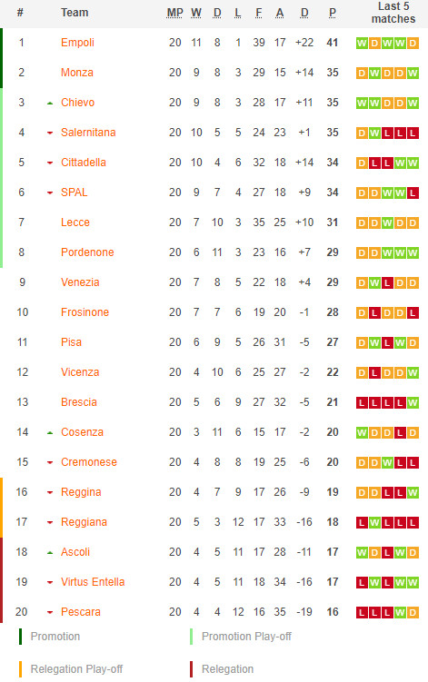 30/01/21 ชนะ เบรสชา 2-1 (เหย้า) เซเรีย บี / เสมอ ... เจ๊า