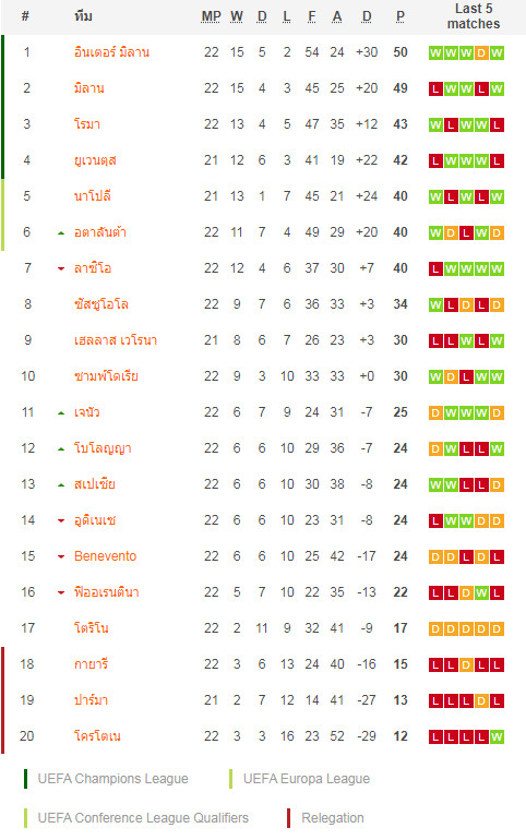16/01/21 แพ้ โบโลญญ่า 0-1 (เยือน) เซเรีย อา / รอง ปป ... เสีย