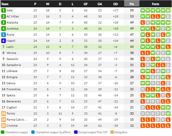 14/02/21 ชนะ เอซี มิลาน 2-0 (เหย้า) เซเรีย อา / รอง 1 ... ได้