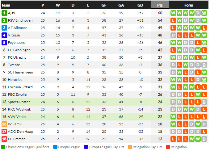 วิเคราะห์บอล พรีเมียร์ดัตช์ : วีวีวี เวนโล่ (15) -vs- สปาร์ต้า ร็อตเตอร์ดัม (13)
