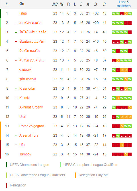 12/03/21 ชนะ รอสตอฟ 1-0 (เหย้า) รัสเซีย พรีเมียร์ลีก / เสมอ...ได้
