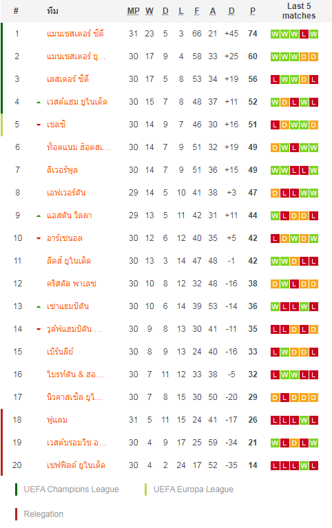 ฟอร์ม 6 นัดหลังสุดในลีก