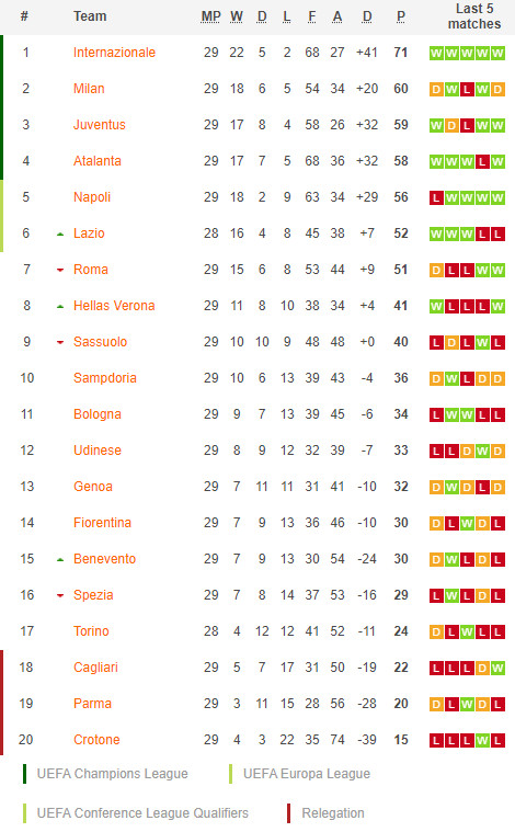 03/04/21 แพ้ ลาซิโอ 1-2 (เยือน) เซเรีย อา / รอง 1 ... เจ๊า