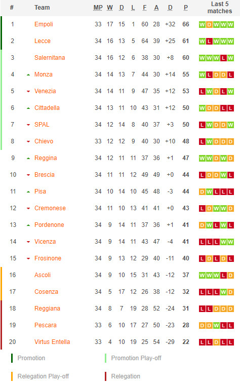 17/04/21 ชนะ เบรสชา 4-2 (เหย้า) เซเรีย บี / ต่อ 1 ... ได้