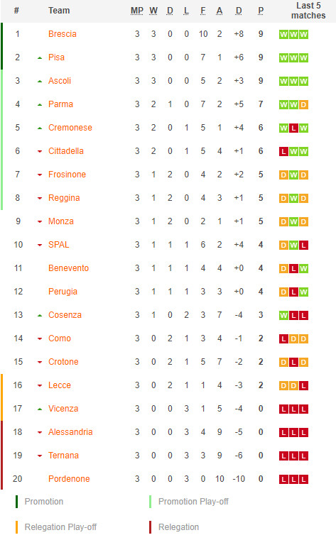 เบรสชากำลังท็อปฟอร์มชนะรวมทุกรายการ 4 นัดติดต่อกัน เกมรุกยิงกันสนุกสนานมาก การเปิดบ้านเจอโครโตเน่สองเกมหลังก็เอาชนะสบายยิงขาดทุกนัด ทีมเยือนผลงานไม่ดีเท่าไหร่ 3 เกมลีกยังไม่ชนะใครเก็บได้แค่สองแต้ม นัดนี้แพ้ทั้งทางบอลและฟอร์มการเล่นเบรสชาน่าจะย้ำแค้นได้อีกเกม