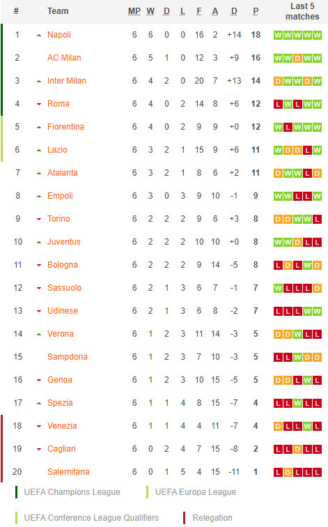 27/09/21 แพ้ นาโปลี 0-2 (เยือน) เซเรีย อา / รอง 1.75 ...เสียครึ่ง