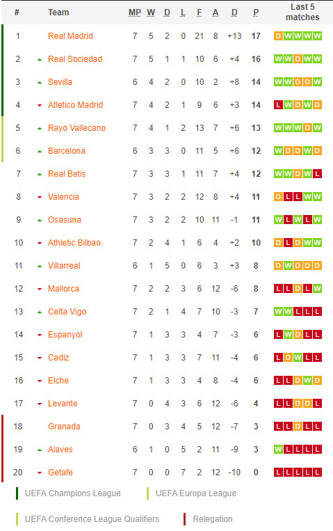 22/09/21 แพ้ ราโย บาเยกาโน่ 1-2 (เหย้า) ลา ลีกา / ต่อ 0.5 ... เสีย