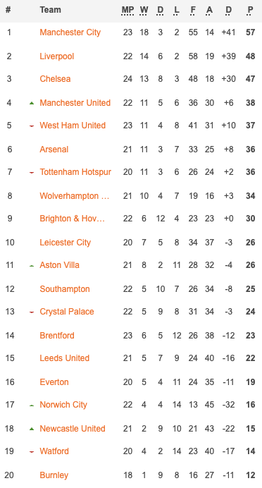 02/01/22 แพ้ ลีดส์ 1-3 (เยือน) พรีเมียร์ลีก / รอง 0.5...เสีย