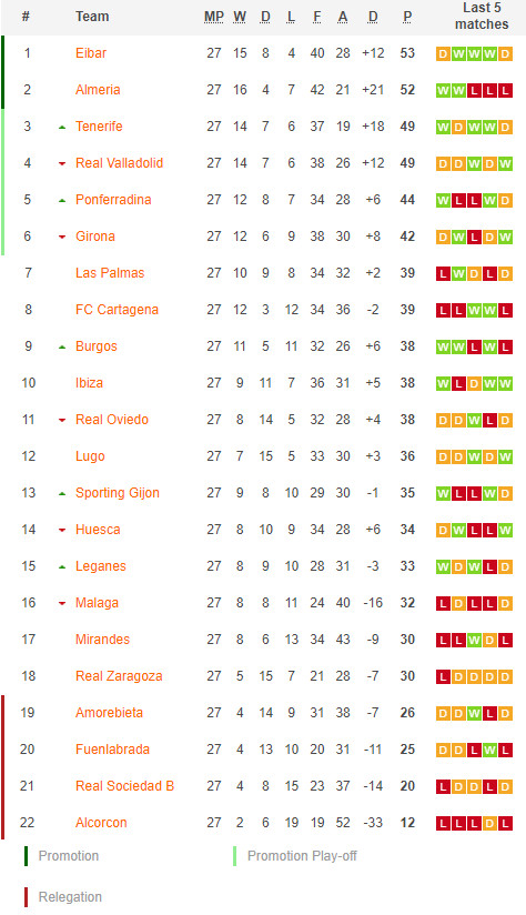 07/02/22 แพ้ ลาส พัลมาส 0-2 (เหย้า) เซกุนด้า / เสมอ ...เสีย