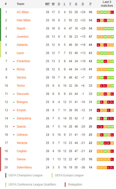 13/02/22 แพ้ เวโรน่า 0-4 (เยือน) เซเรีย อา / รอง 0.5 ... เสีย